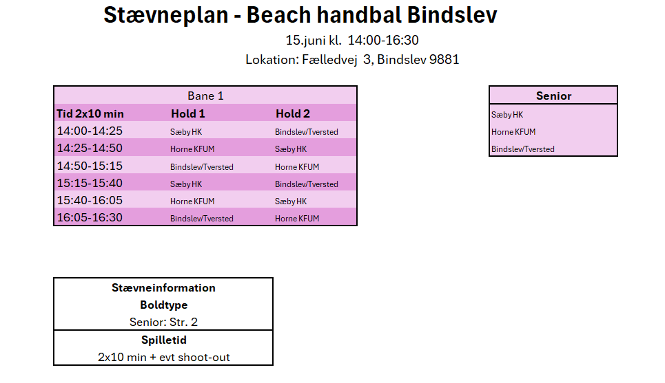 Stævneplan 15. juni Bindslev