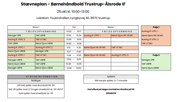Se stævneplan - Lør. d.25. okt, 10:00-15:00 - Trustrup-Ålsrode IF, Toubro hallen