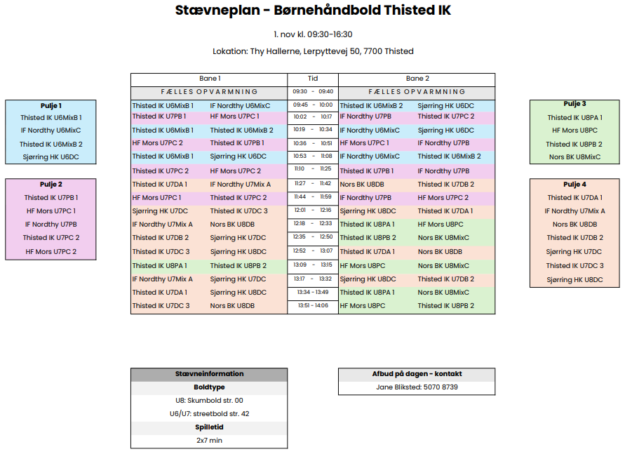 Se Stævneplan - Lør. d. 1. nov, kl. 09:30-16:30 - Thisted IK, Thyhallerne