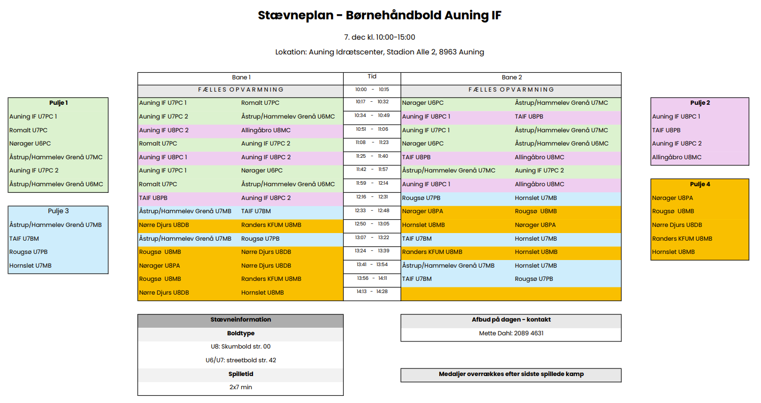 Stævneplan 7. december 2025 - Auning