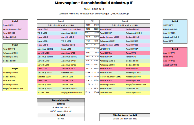 Stævneplan 7. februar 2026 - Aalestrup