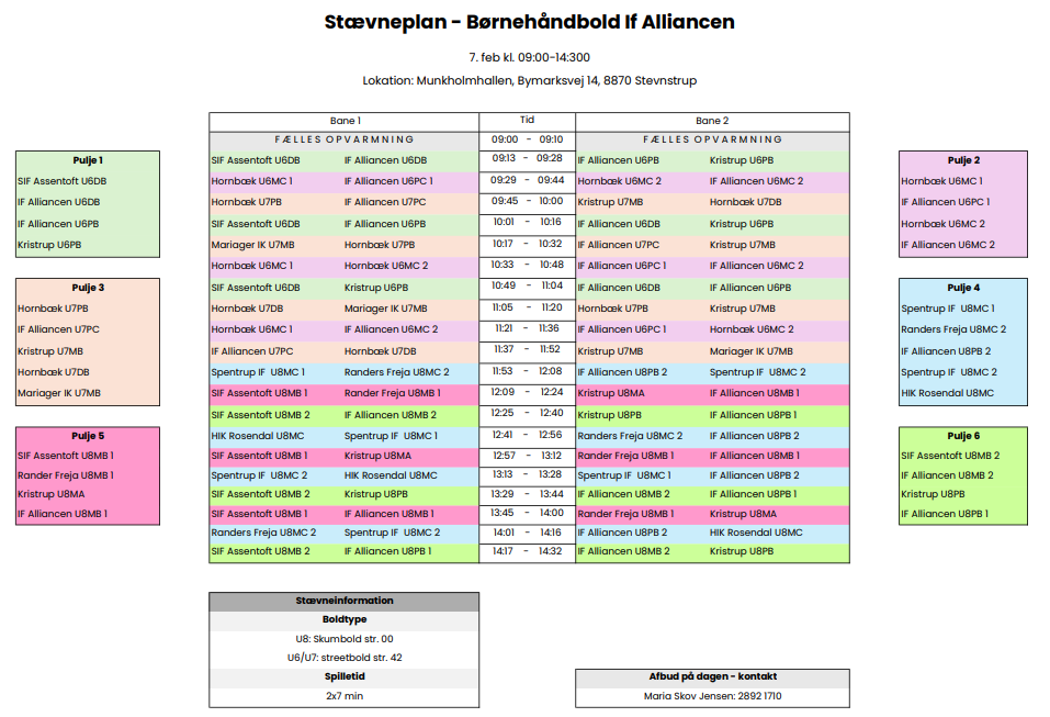 Stævneplan 7. februar 2026 - Stevnstrup