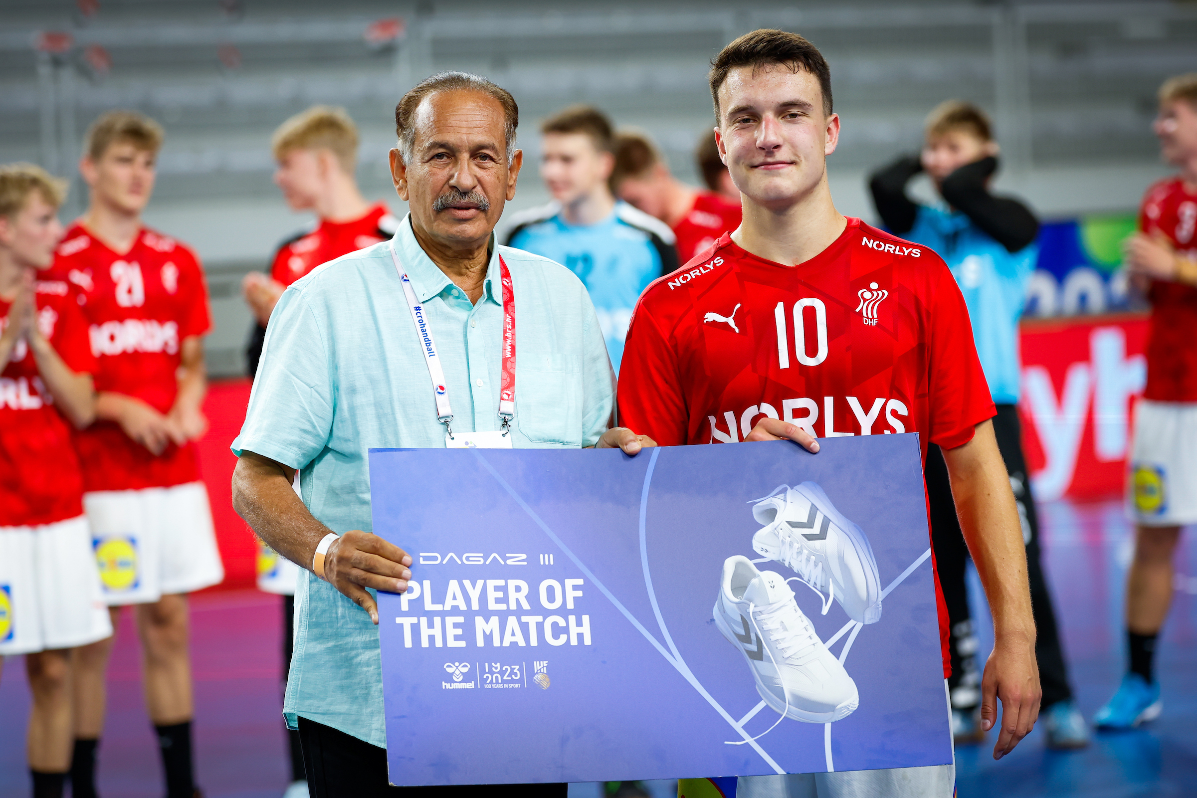 17-årige Frederik Emil Pedersen blev kampens spiller for fjerde gang ved VM. Foto: Croatia 2023 / Kolektiff images
