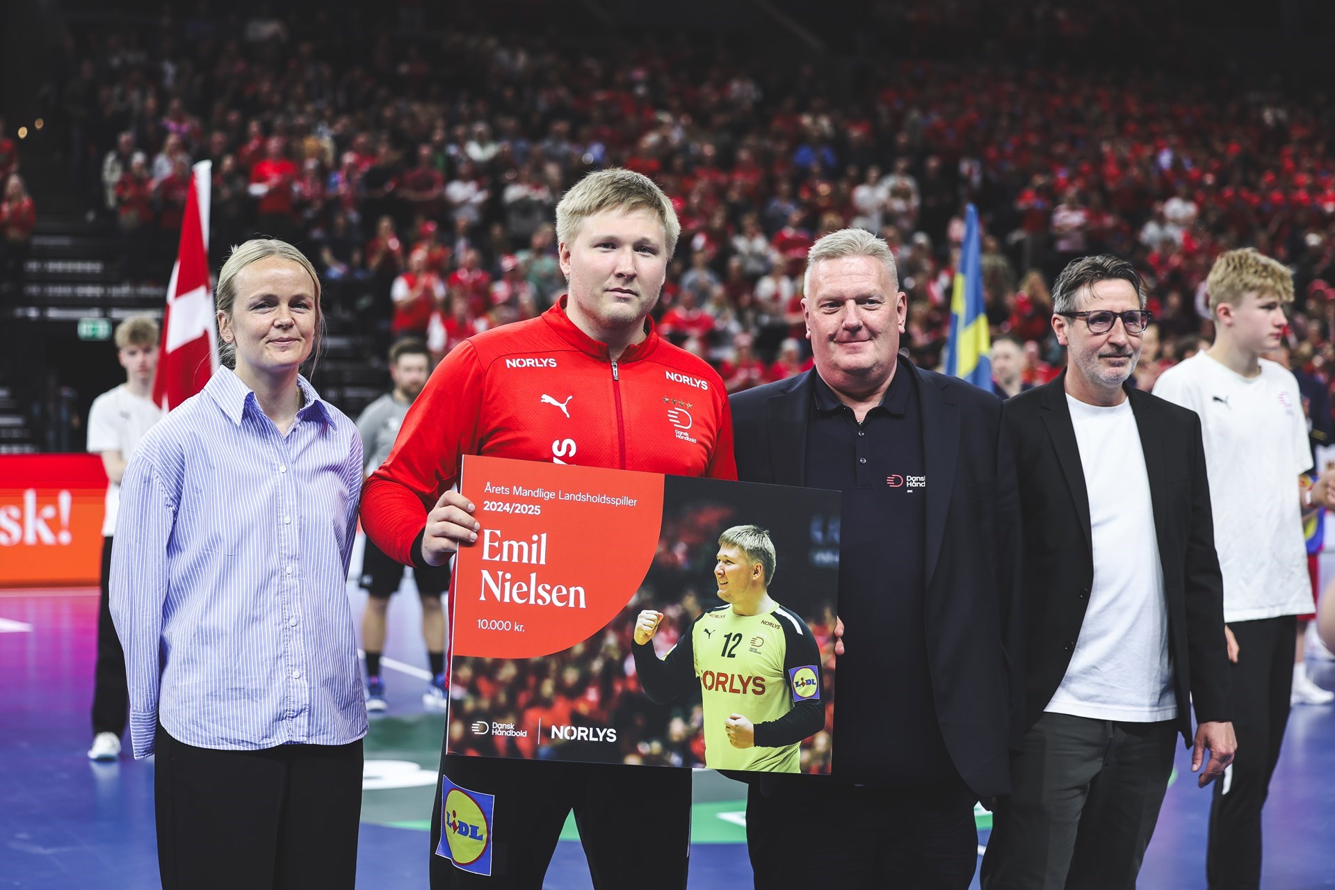 Overrækkelsen af prisen skete før søndagens EHF Euro Cup-kamp mod Sverige, hvor Emil Nielsens kollegaer og de flere end 10.000 fremmødte i Royal Arena sendte massive klapsalver ned over den danske keeper.