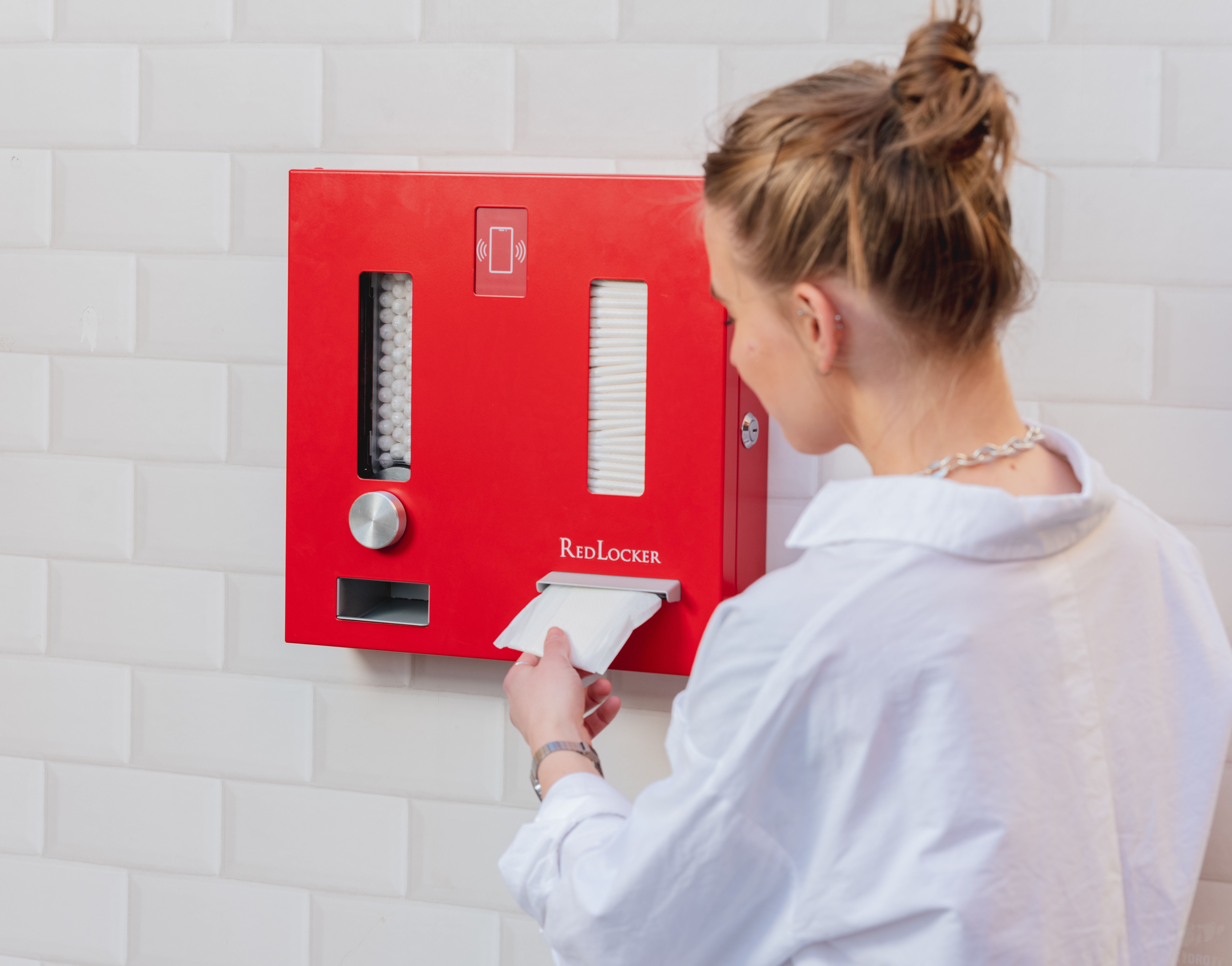 RedLocker er en hurtigt voksende virksomhed, som er skabt ud fra et ønske om at gøre menstruationsprodukter mere tilgængeligt i det offentlige rum. Med en specialdesignet dispenser, kan piger og kvinder frit trække bind og tamponer. De røde dispensere er blevet implementeret tusindvis af steder i Europa.