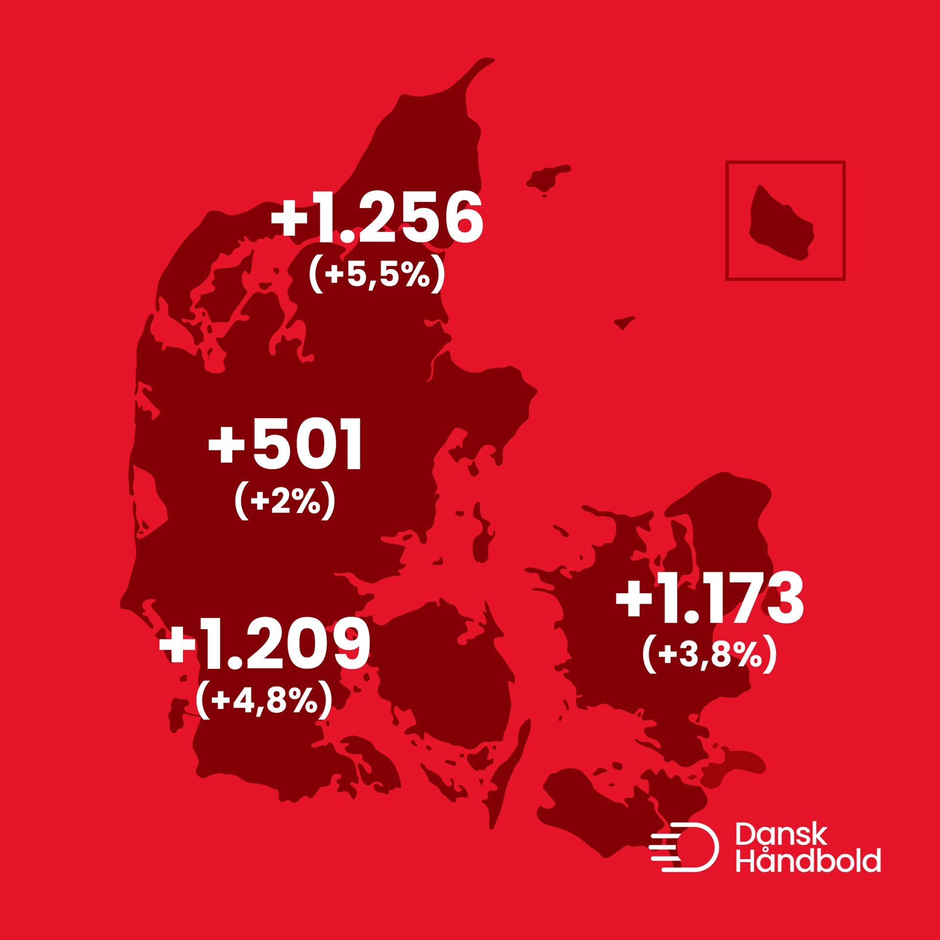 I alle DanskHåndbolds fire regioner er medlemstallet gået frem med den største stigning i Nordjylland på 5,5 procent og 1.256 flere medlemmer. Se væksten for de enkelte regioner nederst i artiklen.
