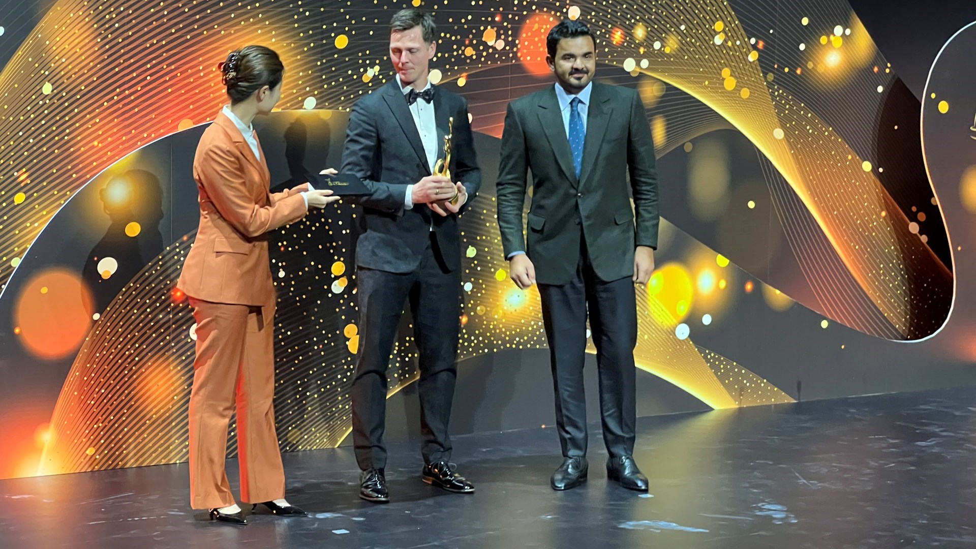 Hans Lindberg var i Portugal for at modtage prisen på vegne af Håndboldherrerne.