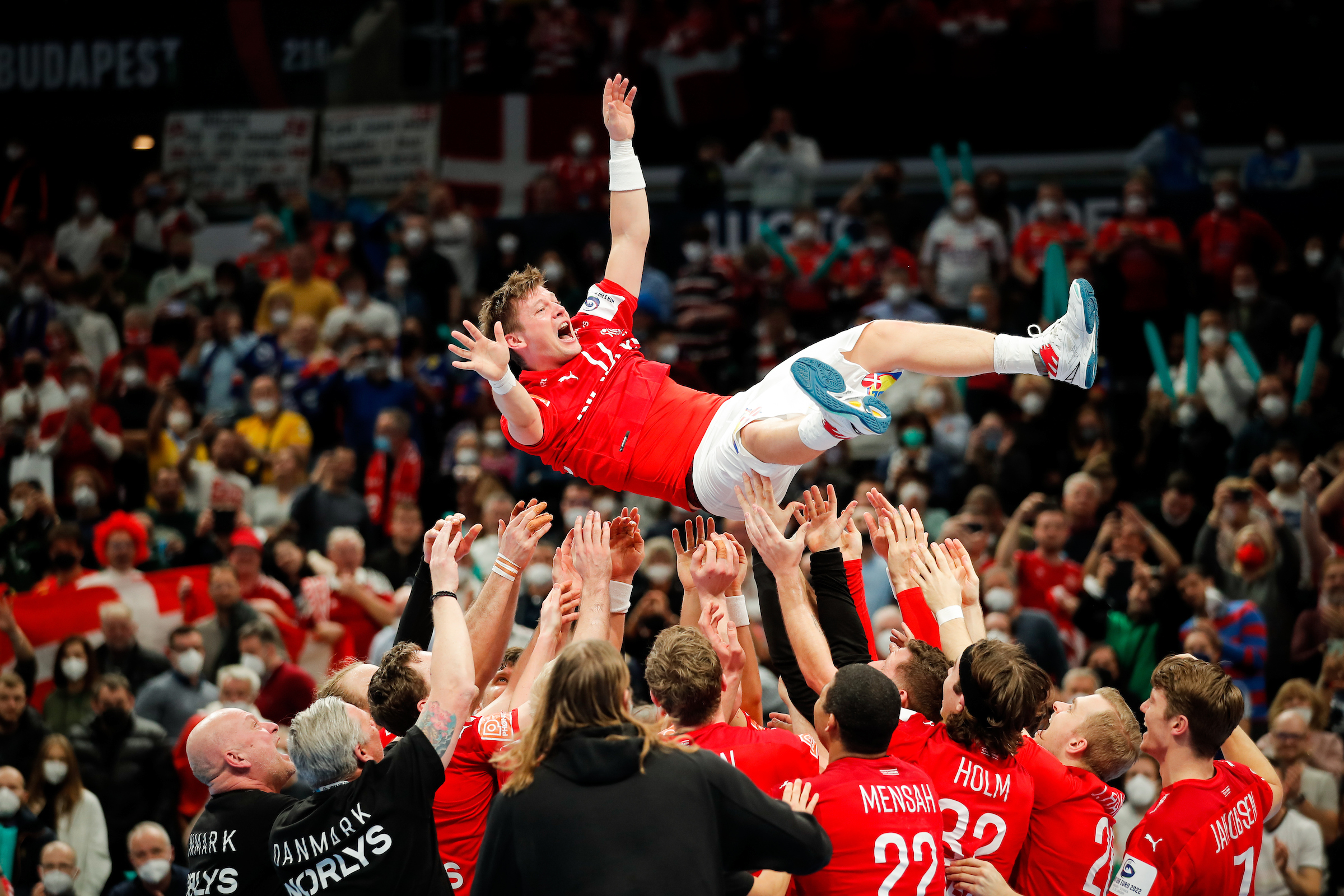 Lasse Svan hyldes efter sit sidste mesterskab for Danmark, EM i 2022. Foto: EHF