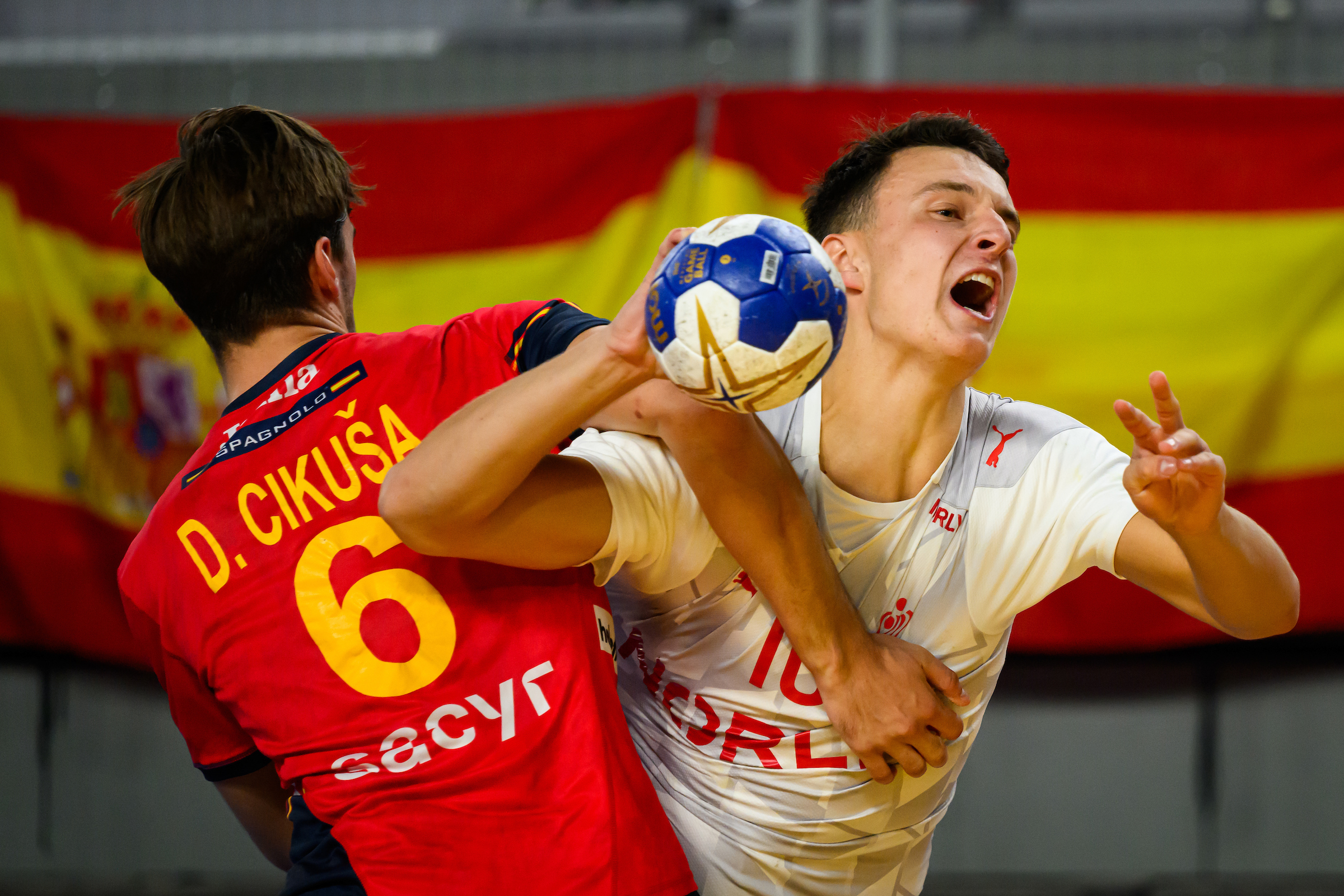 Den danske topscorer Frederik Emil Pedersen skød anden halvleg i gang. Men Spanien havde ikke i sinde at lægge sig ned så let. De kæmpede sig tilbage og tog føringen igen efter 40 minutter. De unge danskere kæmpede med at finde de rigtige løsninger mod det offensive spanske forsvar og kom længere bagud, men i håndbold kan det gå rigtig stærkt. Med 12 minutter tilbage af kampen fik Danmark med tre hurtige scoringer og redninger af Malte Eichorst bragt sig tilbage på uafgjort.