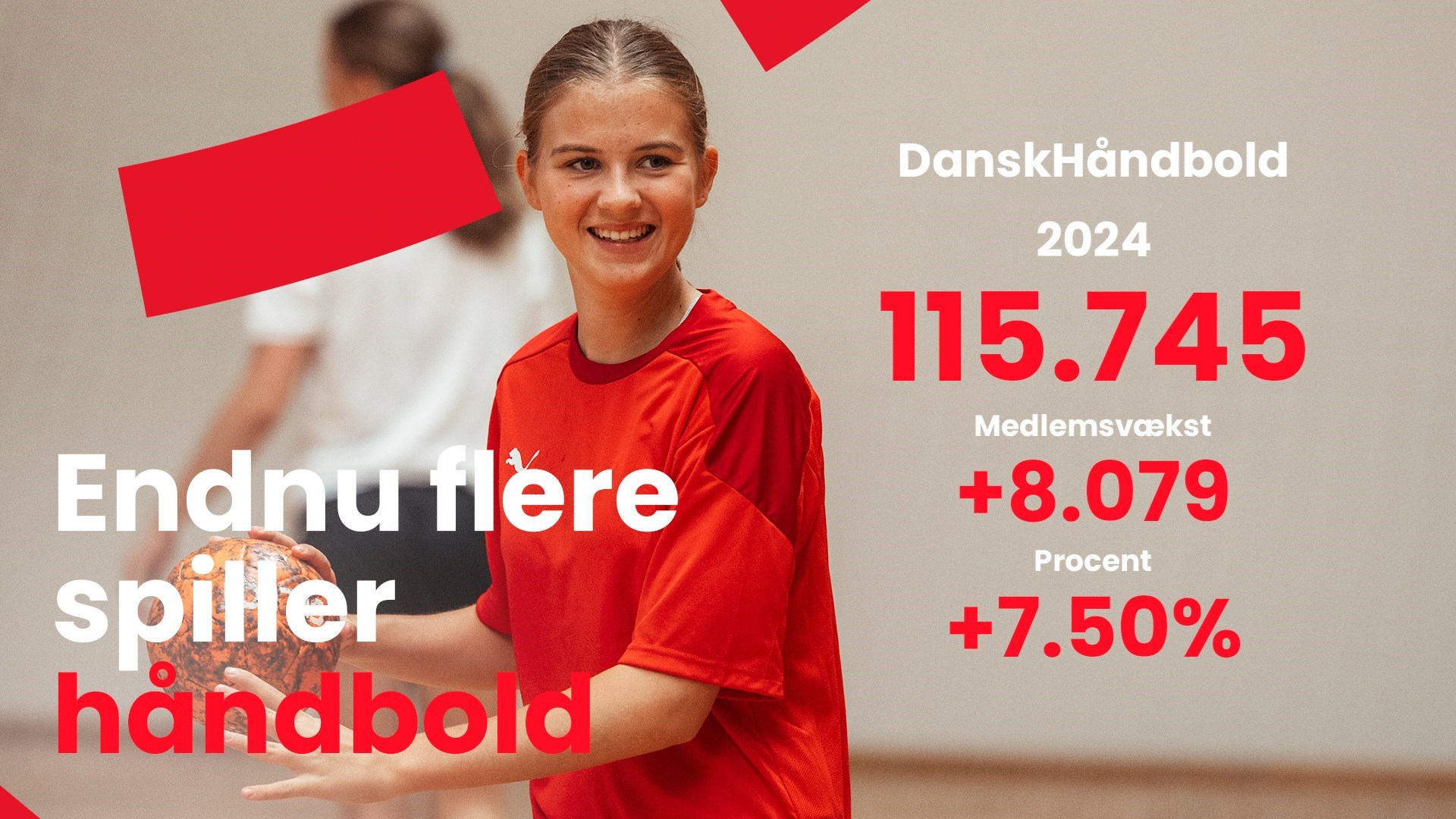 I alt var der i 2024 115.745 registrerede håndboldspillere. Det er en stigning på 8.079 medlemmer – eller 7,5 % – i forhold til året før. Samtidig er det også det største medlemstal hos DanskHåndbold siden 2009.