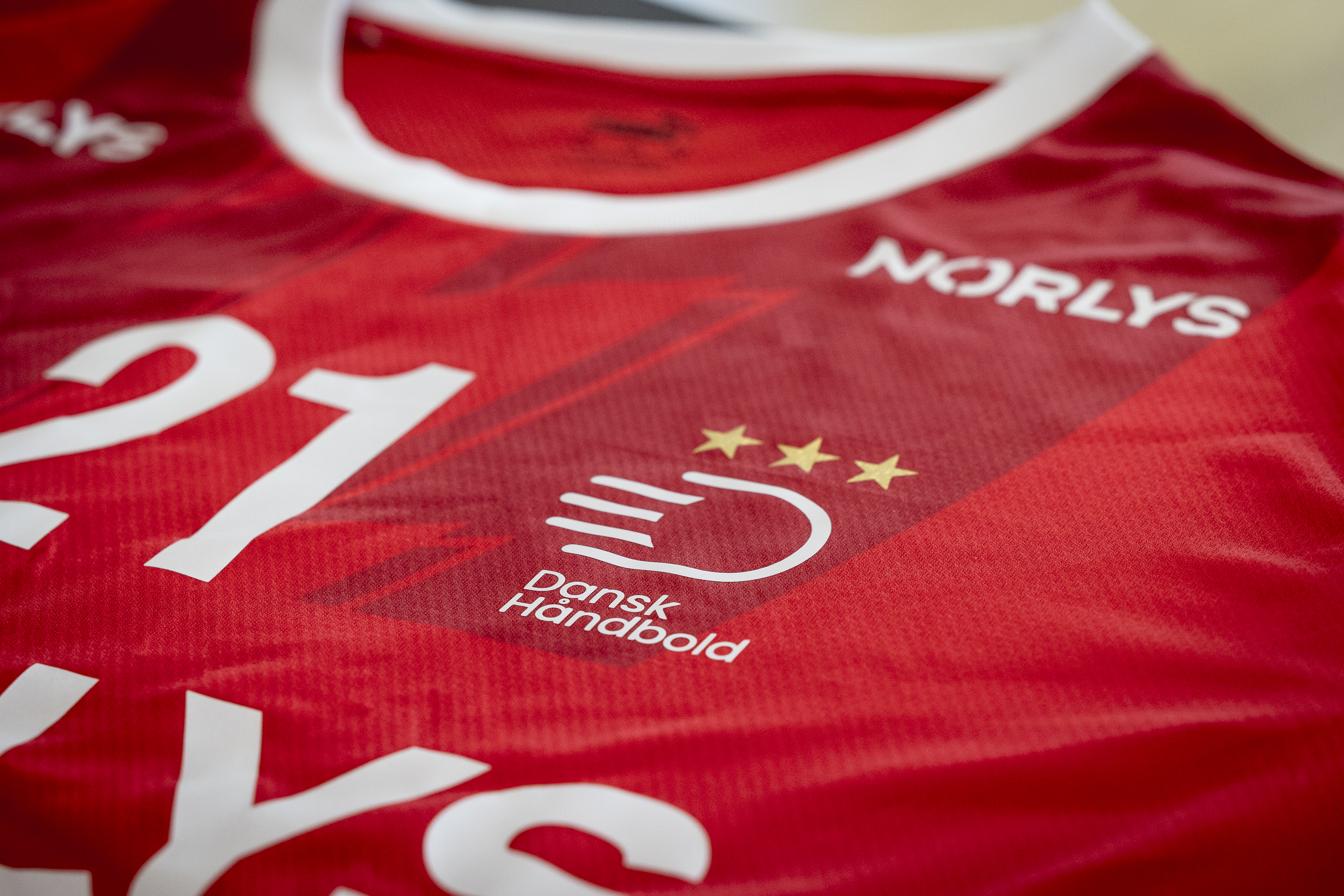 Det nye navn og logo vil fremover også pryde den danske landsholdstrøje. Foto: DanskHåndbold