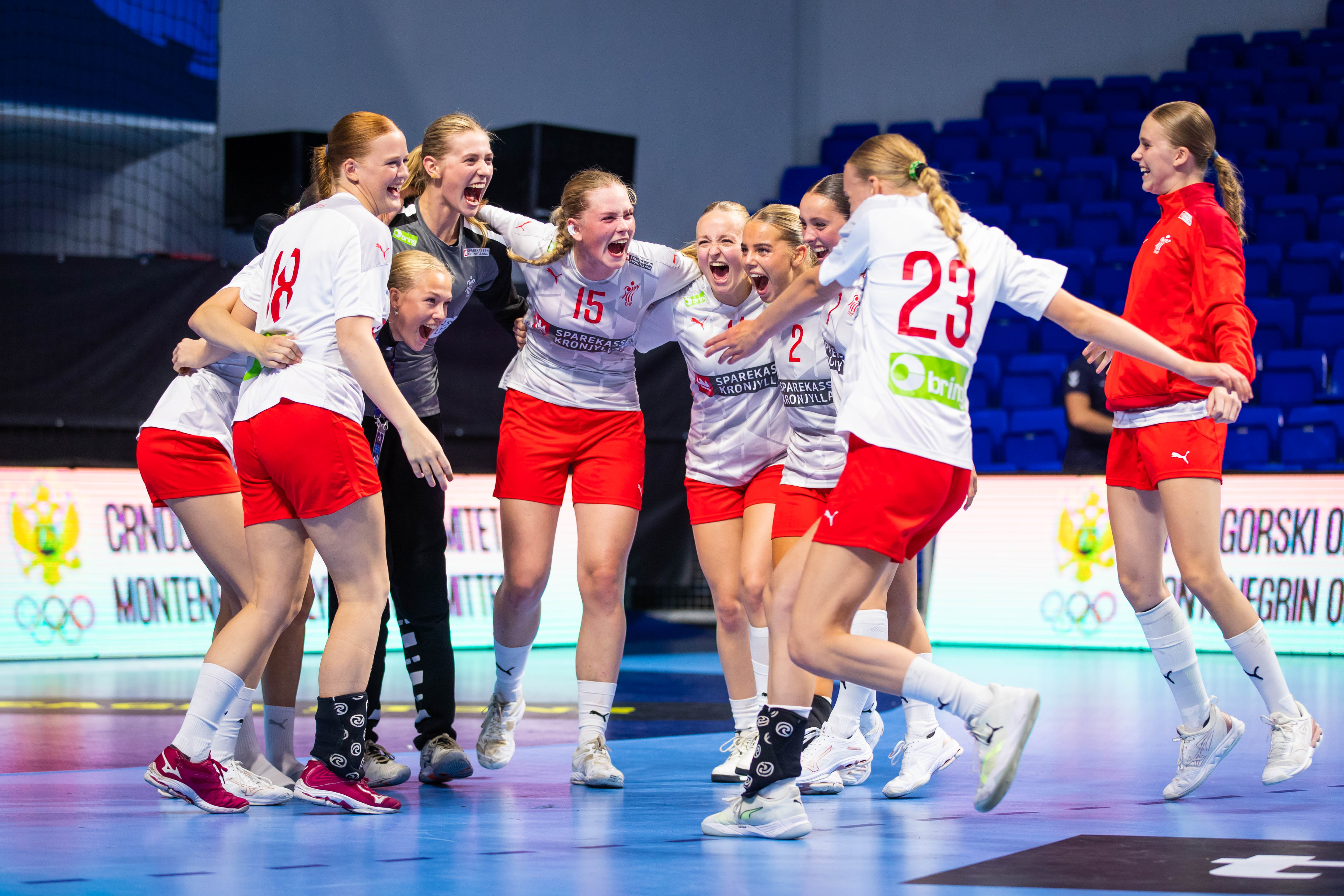 Dansk jubel efter sejren over Frankrig onsdag aften. Foto: HF Montenegro