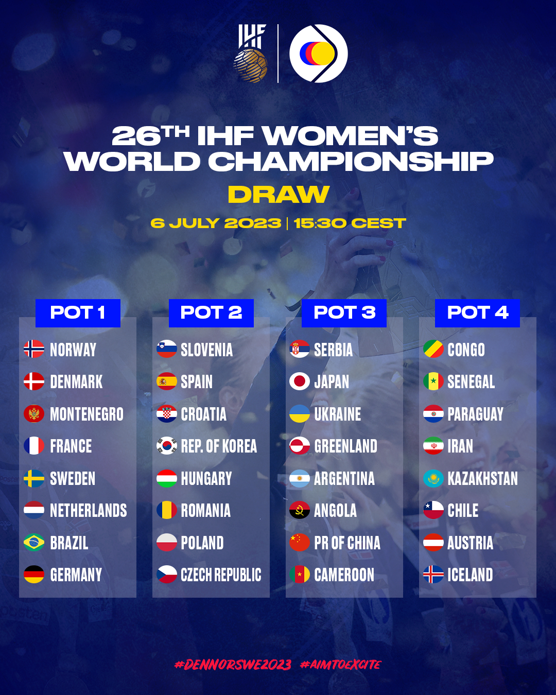De topseedede nationer tæller også de to øvrige VM-værter fra Norge og Sverige sammen med de olympiske mestre fra Frankrig, og de tidligere verdensmestre Holland, Tyskland, Montenegro og Brasilien.