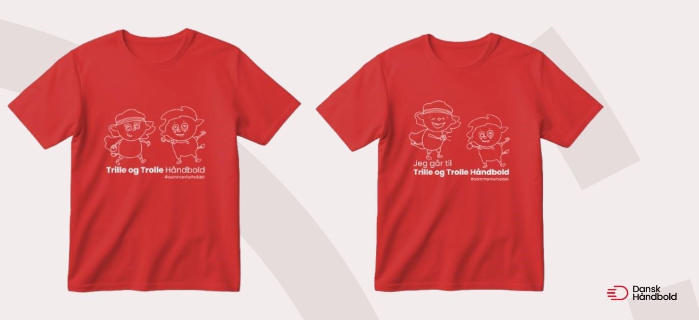 DanskHåndbold tilbyder, i samarbejde med Encina Print Aps, at få trykt t-shirt med Trille og Trolle Håndbold logo, til alle troldebørn - store som små.