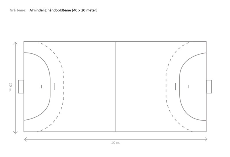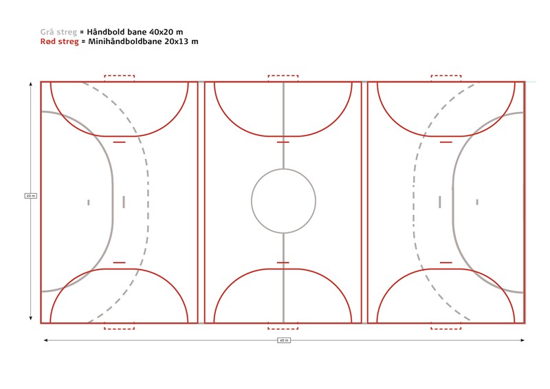 Den mest kendte bane er den store håndboldbane, der er 40 meter lang og 20 meter bred, og som flere end 1500 idrætshaller i Danmark er bygget op omkring.