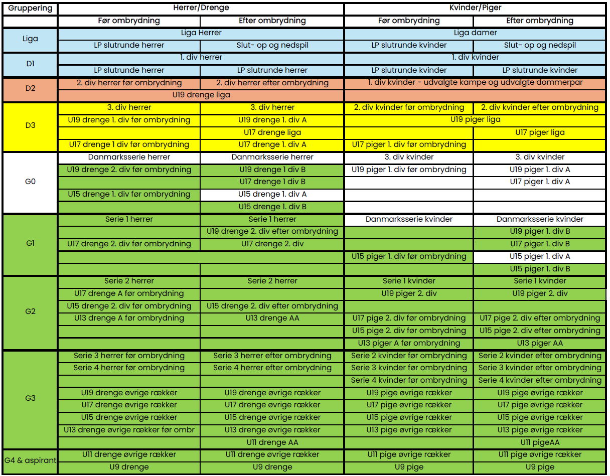 - Man rykker ikke ned fra A, B eller C-rækkerne. Dette kan dog imødekommes ved en ansøgning.